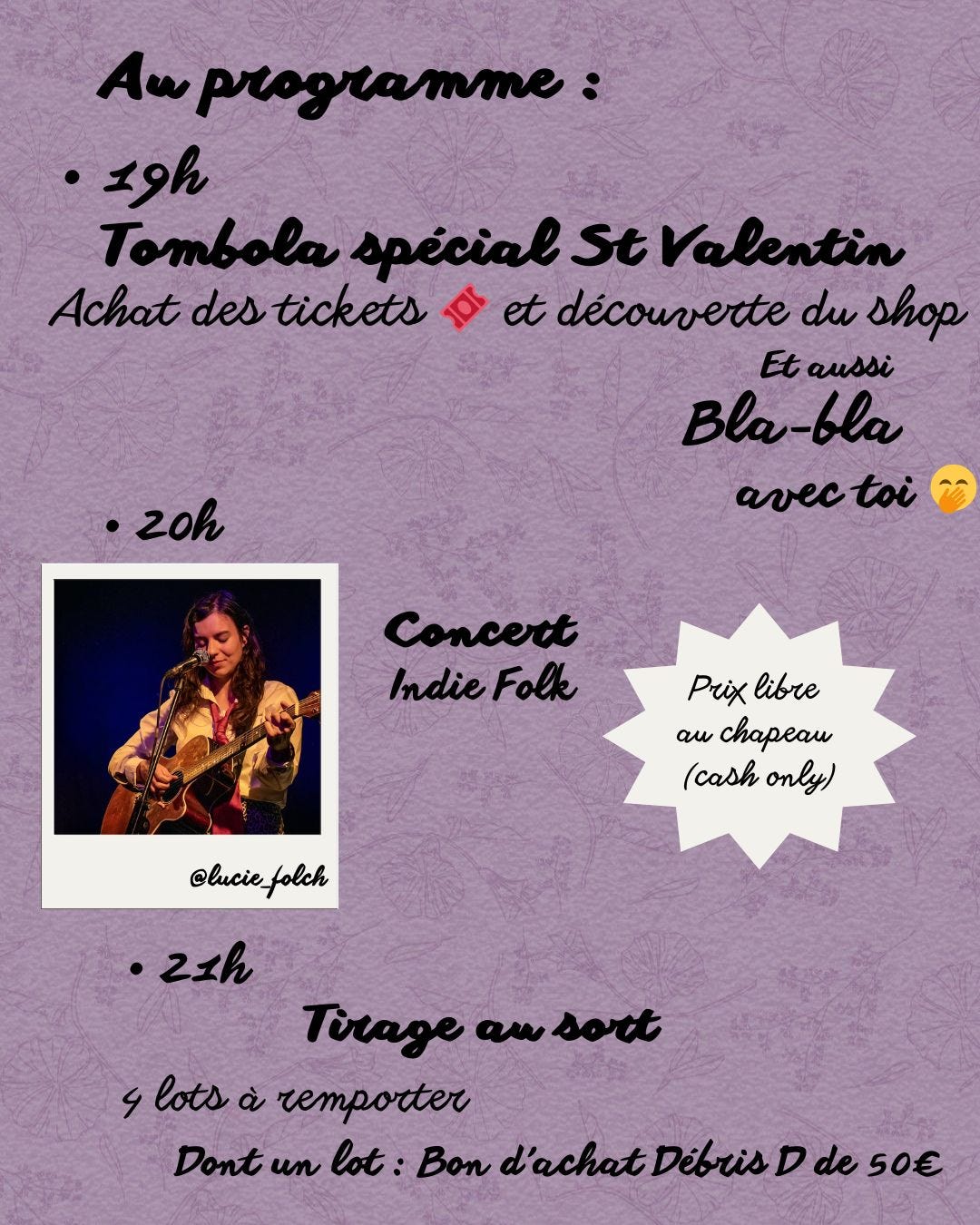 L’avantage est que mon prochain concert est dans une semaine, donc pas besoin de réfléchir longtemps pour te décider vite :-)